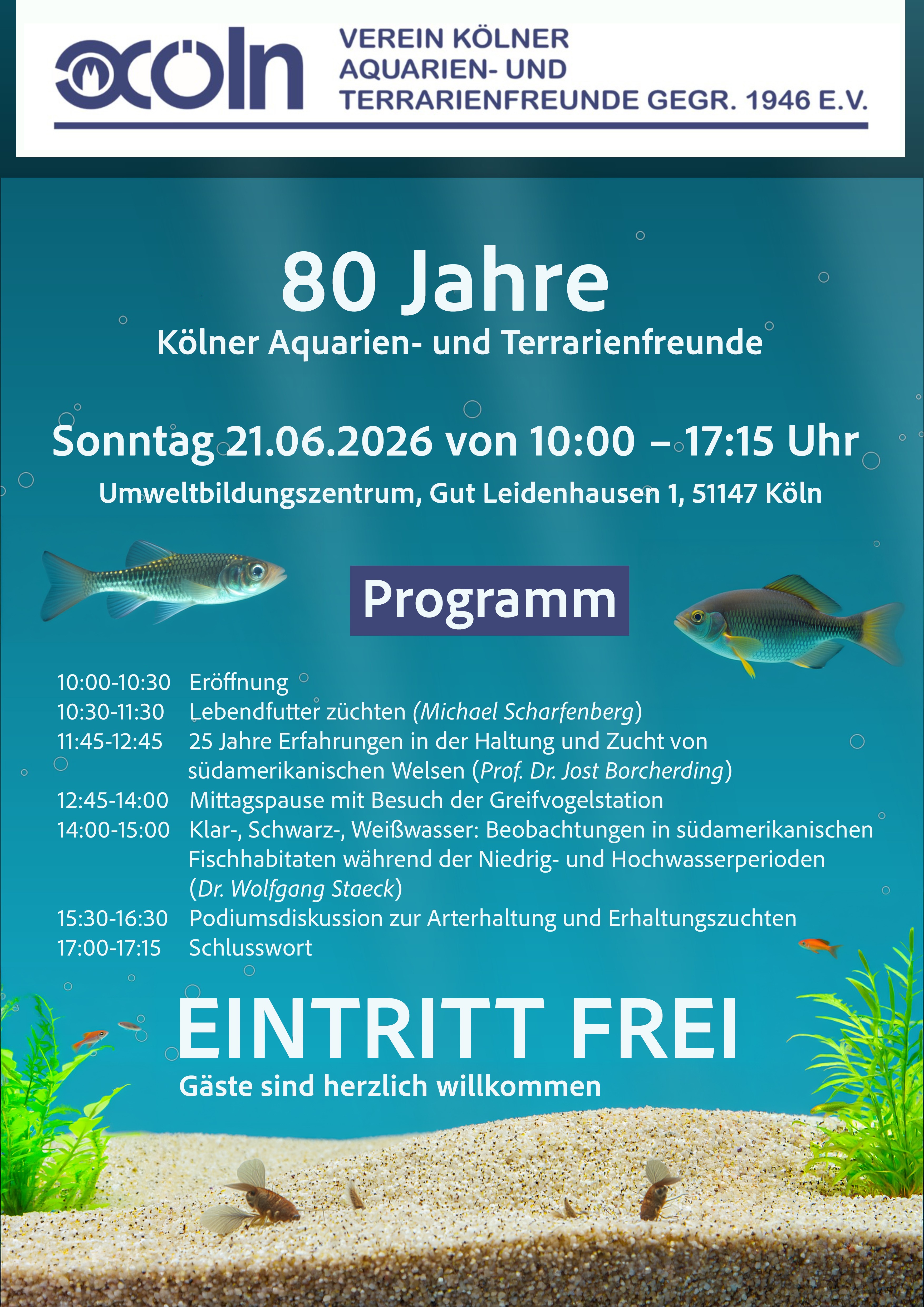 weitere Informationen finden Sie in unserer Rubrik Kölner Aquarianertreff oder Sie können sich unseren Flyer herunterladen.